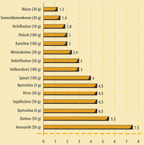 Durchschnittliche Gehalte von Spirulina pro 100 g: